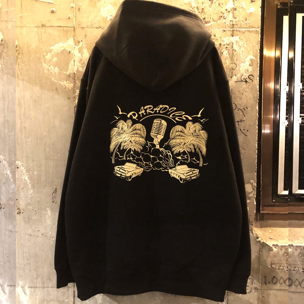 ガイコツマイクを中心に、お互いのブランドネームを乗せ走る車が交差、コラボすることをイメージさせ、"PARADICE"「極楽,天国」という言葉を落とし込んだ1枚。